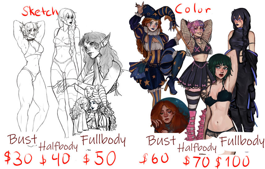 Prices are listed on my commission page (Feel free to ask if there's more customization to be had)